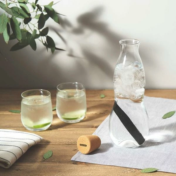 It’s no secret that our tap water is filled to the brim with contaminants. Whether it’s lead from pipes or chlorine to purify it, our tap water is far from clean which is what makes this hand blown carafe such a great addition to the home. Complete with an active charcoal filter that offers a six month lifespan, this hand blown carafe offers a combination of materials that’s been used for centuries because let’s face it, if it isn’t broke, don’t fix it right? This particular design however has taken our modern lives into account and has been designed to ensure it fits all fridge doors, so you can filter and cool your water all at the same time. So what are you waiting for? Help the planet and clean your water in the most sustainable way possible! The perfect gift for the health conscious among us. Description Dimensions 10 x 10 x 29 cm; 500 Grams. Capacity 1.1 litres. Item weight 500g. Material Cork, Glass and Silicone. Comes with 1 charcoal filter. Wash by hand with soap or place in the dishwasher. Please note that the natural cork is not dishwasher friendly and you need to remove the charcoal stick before washing it. Packaged in a cardboard box.