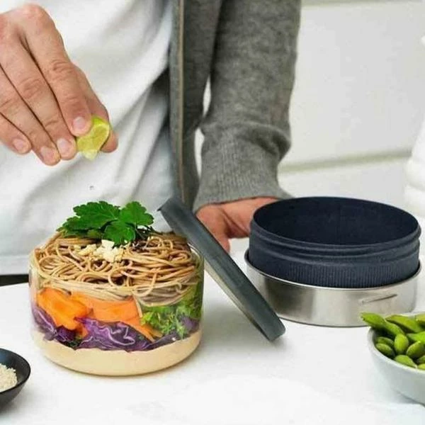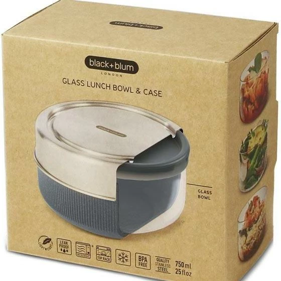 If you like to take your favourite meals to work with you, then the 750ml, leakproof and lightweight Glass Lunch Bowl by Black + Bum is your go-to lunch box. This awesome lightweight lunch bowl in slate is big enough, and tough enough to carry everything from your favourite sandwiches and salads to some seriously hearty curries or even giant pasta dishes. It even boasts a silicone lid to stop any splattering in the microwave. Say goodbye to plastic and hello to your new glass lunch bowl that can do it all. Description 100% leakproof. Microwave safe, including wood fibre base for easy handling when hot (not stainless steel lid). Oven safe glass and silicone lid (not wood fibre base or steel lid). Dishwasher safe. Freezer safe. BPA free. Size: 14cm wide, 8cm high. Capacity: 750ml. Packaged in a cardboard box.