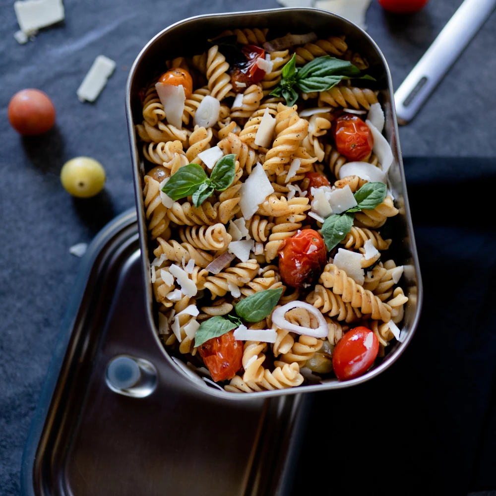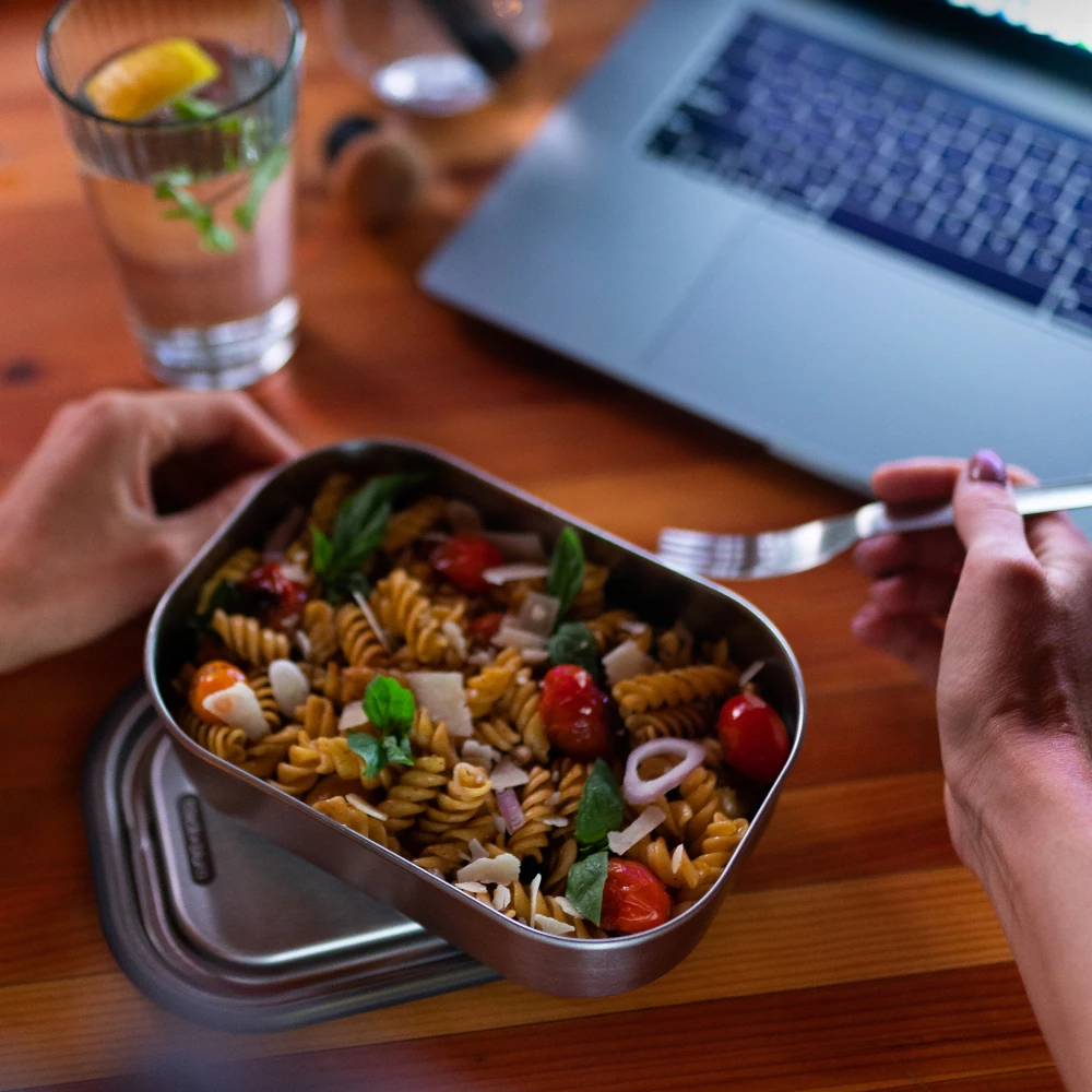 The silicone valve creates a secure vacuum sealed closure, the slider divider allows you to separate the contents with ease, and the fork + holder are added for convenience. A beautifully thought out winner providing the best meals on the hoof!