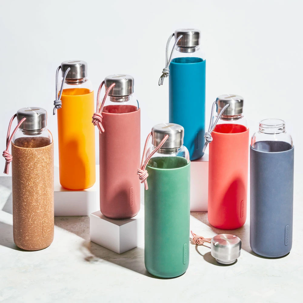 Black+Blums new Glass Water Bottles are designed to offer a totally unique and fully enjoyable drinking experience. A really neat and well thought out detail is that the cap thread itself is unique as it is actually to be found on the inside of the bottle neck (not the usual outside) giving you a smooth, non-spill outer surface to confidently drink from.