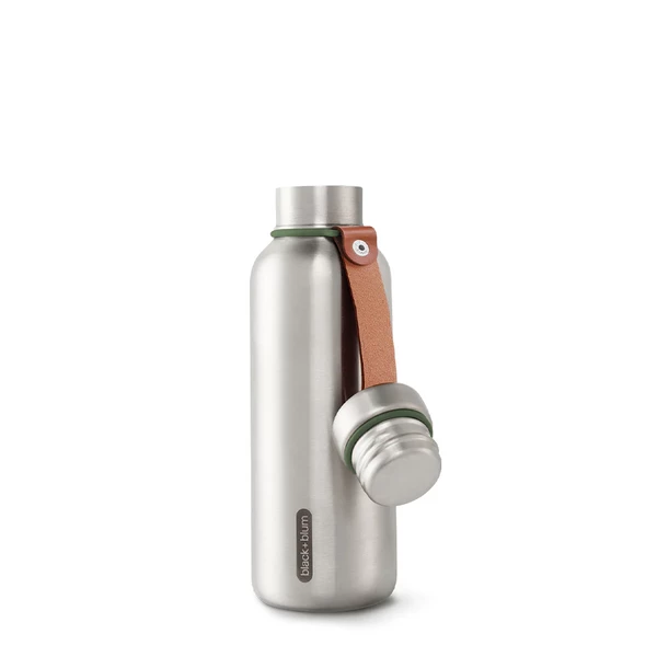 Keep your drinks cool for up to 24 hours – or warm for 12 – with this nifty bottle from Black and Blum! This stainless steel water bottle is the one you buy once and do not replace. It will last a lifetime because of its intricate manufacturing and high-quality single wall stainless steel body. The wide spout allows you to load your coffee with ice in summer as well as easy cleaning. The large stopper with a secure watertight seal has an ocean blue silicone ring that adds to the overall aesthetic. Description Height 23.5cm, Depth 7.3cm. The material is single-wall semi-polished stainless steel, Polypropylene lid, Silicone, and Vegan leather. BPA free, Vegan, Leakproof. Special Care Instructions – Dishwasher safe (remove leather strap). Not suitable for microwave.