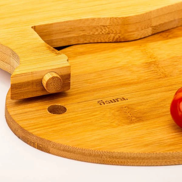 A perfect addition to any Kitchen, Why have boring Chopping Boards when you can have a piece of Art, this COW cutting board is a perfect size, and because it stands takes up less space. Can be taken apart and stored if needed. DIMENSIONS; 36 x 25cm Bamboo