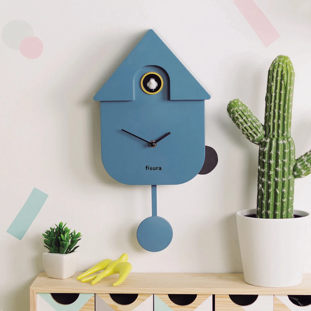 Wall clock with pendulum and cuckoo in an updated interpretation of the memories of the old cuckoo clocks and birdhouses in the trees; every hour the bird comes out to sing the inevitable passing of time. The clock has a soundless mode, although the sound mode also does not sound between 22:00 and 5:00, so it is important to set the clock correctly after installation.