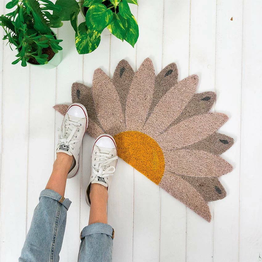 Coconut Fiber and PVC Doormat by Fisura with a beautiful daisy shape. Welcome your guests with a happy smile and tell everybody you are proud of your blossom home.