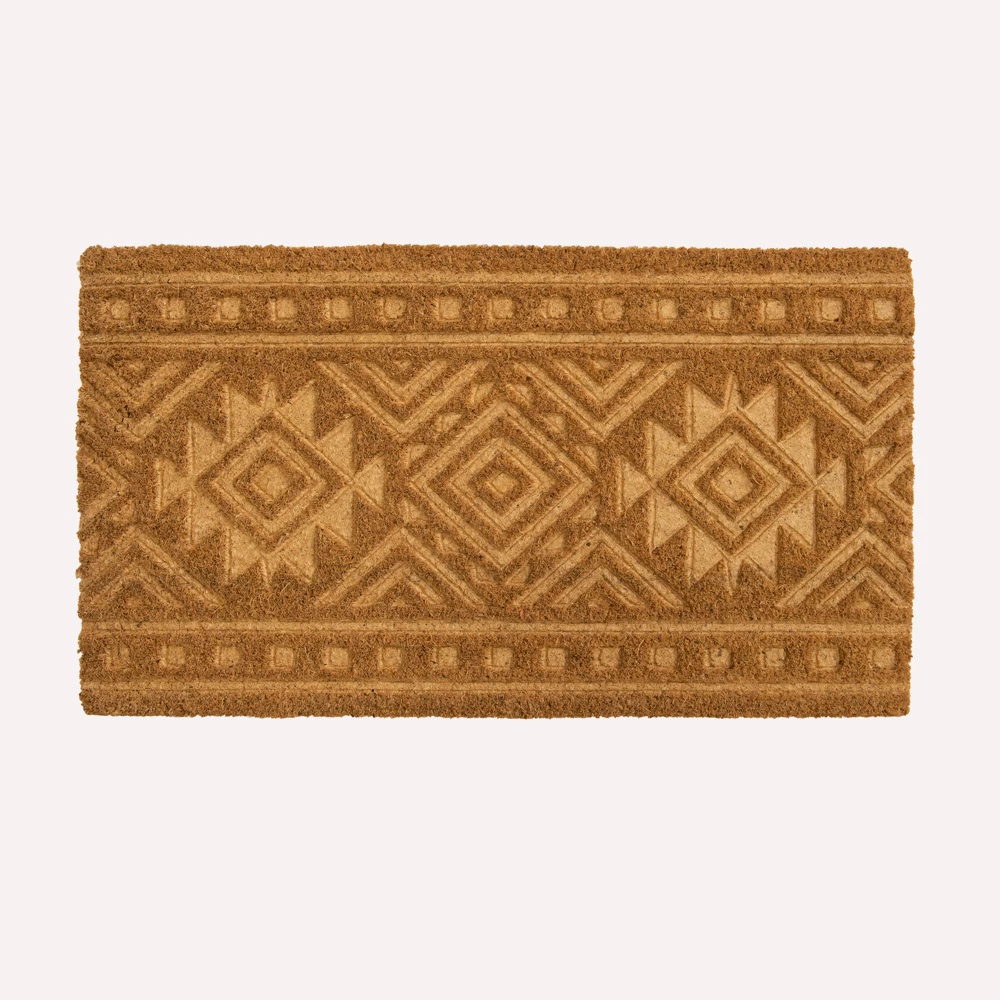 FISURA doormats are the perfect original gift, made of 100% coconut fibre, a natural recyclable material and with a non-slip PVC base, they are the ideal choice to clean shoes before entering the house and also to surprise all visitors. This doormat features an elegant and cosy tribal motif relief.