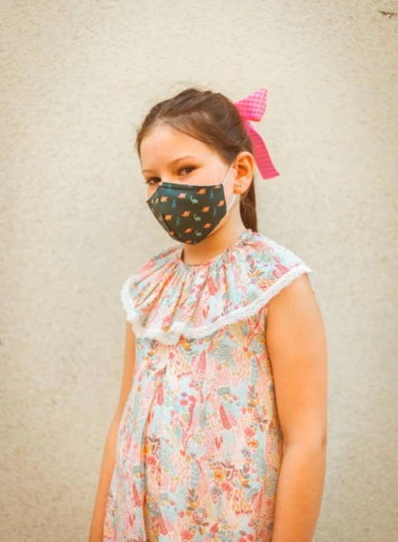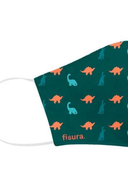 Kids face mask in green with a dinosaur print, suitable for ages 6 to 11 years old. All face masks are produced using the best materials and fabrics, taking into account the recommendations of the World Health Organization. Their vast know-how has allowed Fisura to develop a solution that combines comfort with safety, protection and design. Three layers protection face mask: Outer layer with repellent finishing to make virus penetration difficult. Intermediate layer composed of an interlining that maintains an armed canopy to keep the mask shape for a better breathing. Interior layer with a repellent finish plus an antibacterial treatment to avoid virus hosting and proliferation. Non Surgical, non certified.