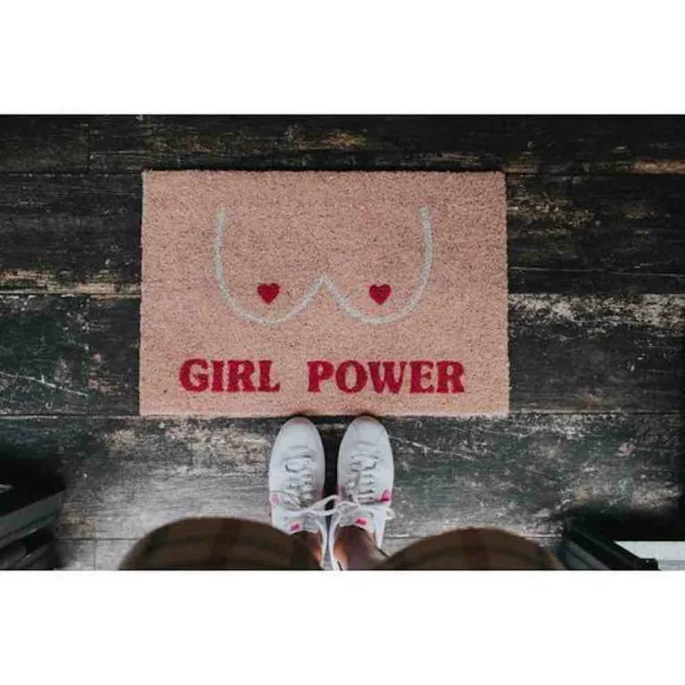 Donnons une touche osée et décalée à notre déco avec le paillasson Girl power. On le prend comme pour annoncer la couleur de notre chez soi! Parfait pour que chacun identifie notre home sweet home et comprenne que chez nous c’est les femmes à l’honneur! Le dessus c’est 100% fibre de coco naturelle, matériau renouvelable, et le dessous est en anti-dérapant en PVC latex. Parfait pour éviter les glissades et veiller à l’hygiène de notre intérieur.