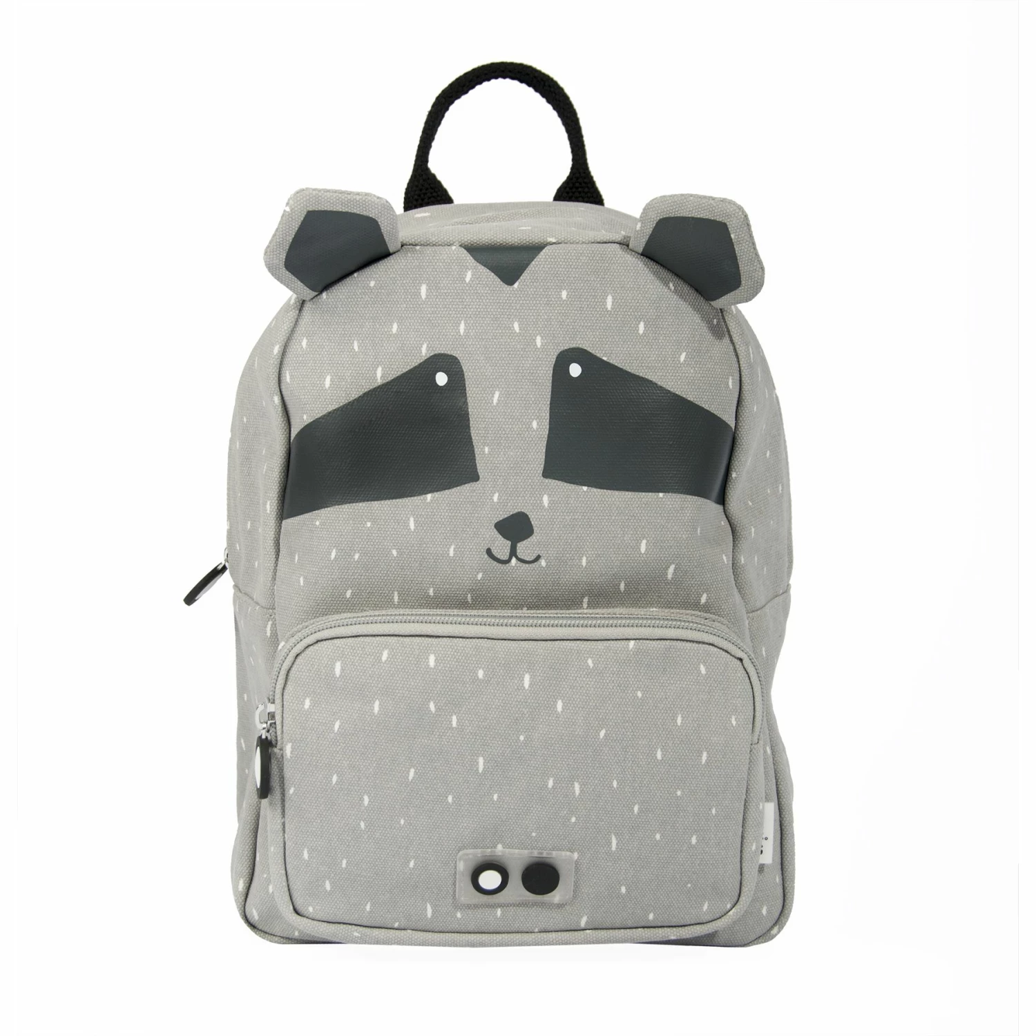 Mr. Raccoon von Trixie mit . Mr. Racoon findet man stets in den Wäldern.. Mit diesem niedlichen Rucksack ist jedes Kind perfekt ausgerüstet für den ersten Schultag oder jene abenteuerliche Aktivität! Der Rucksack hat verstellbare Schultergurte und oben einen Handgriff damit man den einfach am Haken hängen kann. Dank der Brustschnalle rutschen die Schultergurte nicht von den Schultern. Der Rucksack hat an der Vorderseite ein kleine Tasche und die Reißverschlüsse haben einen großen Schieber, damit sie auch von Kindern leicht zu öffnen und schließen sind. An der Innenseite hat der Rucksack ebenso ein Namensschild. Größe: 23 x 31 x 12 cm Pflege: Nur Fleckentfernung Material: Außen: 100% Baumwolle – Innen: 8% Polyester, 20% Baumwolle mit wasserabweisender Acrylbeschichtung